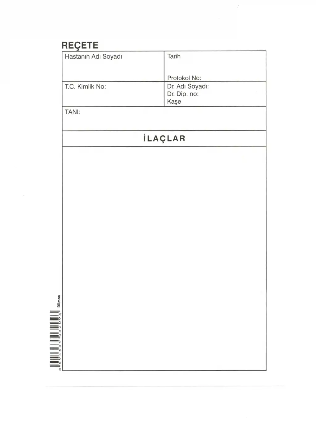 Dilman Reçete 100 Yaprak 13.5 x 20 cm. 1 Adet
