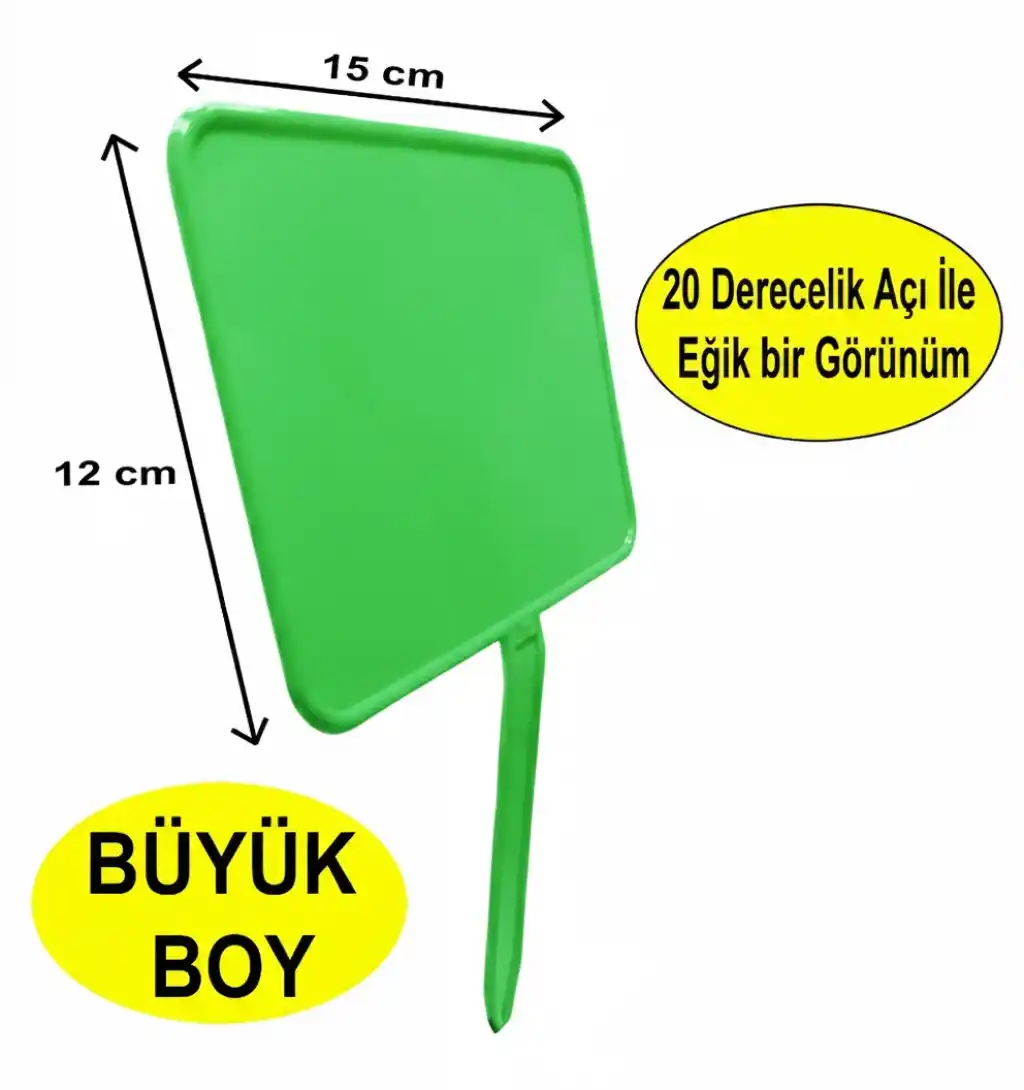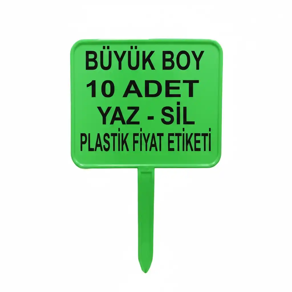 MT Plastik Fiyat Etiketlik, Büyük Boy Yeşil Ürünün alt kısmındaki uzun sivri bölüm sayesinde ürün kullanılacak olan alana rahatlıkla saplanabilir.